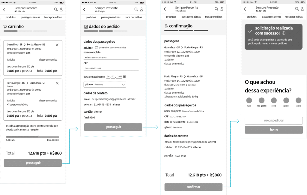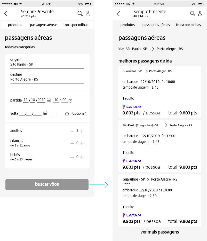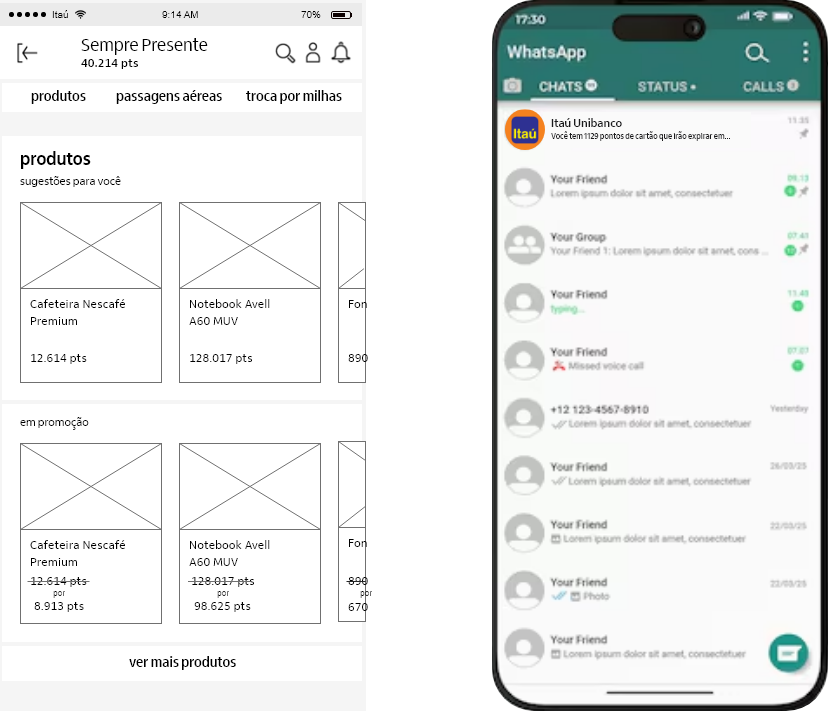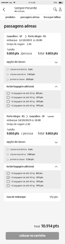 The Sempre Presente project is Itaú Unibanco’s credit card points program accessed via the Credcard app on mobile. Through this app, credit card customers can spend their accumulated points on purchases of products, airline tickets or miles.
